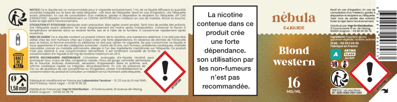 Les e-liquides Nébula sont fabriqués en France par le laboratoire Tecalcor. Avec une composition qui n'a rien à cacher, ils ne contiennent ni métaux lourds, ni plastiques, ni aldéhydes, ni d'alcool ajouté. Ils sont garantis sans diacétyle - sans colorants - sans extraits de tabac.