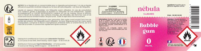 Les e-liquides Nébula sont fabriqués en France par le laboratoire Tecalcor. Avec une composition qui n'a rien à cacher, ils ne contiennent ni métaux lourds, ni plastiques, ni aldéhydes, ni d'alcool ajouté. Ils sont garantis sans diacétyle - sans colorants - sans extraits de tabac.