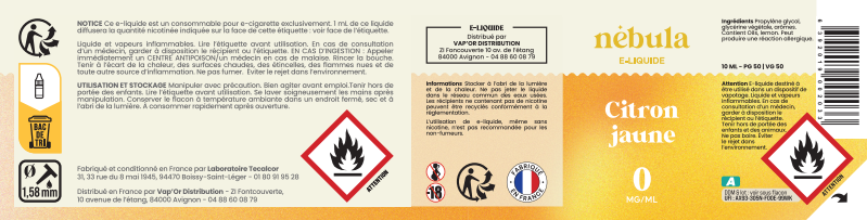 Ce e liquide citron jaune de nebula est en vente dans vos magasins Fontenay le comte , Niort , Bressuire , La Roche sur Yon et La Rochelle