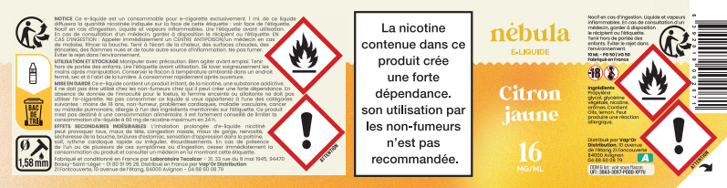 Les e-liquides Nébula sont fabriqués en France par le laboratoire Tecalcor. Avec une composition qui n'a rien à cacher, ils ne contiennent ni métaux lourds, ni plastiques, ni aldéhydes, ni d'alcool ajouté. Ils sont garantis sans diacétyle - sans colorants - sans extraits de tabac. -