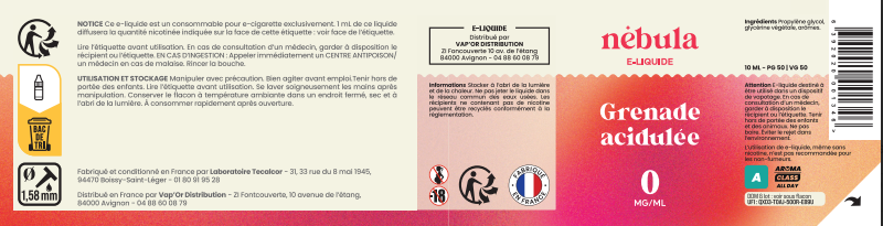 Les e-liquides Nébula sont fabriqués en France par le laboratoire Tecalcor. Avec une composition qui n'a rien à cacher, ils ne contiennent ni métaux lourds, ni plastiques, ni aldéhydes, ni d'alcool ajouté. Ils sont garantis sans diacétyle - sans colorants - sans extraits de tabac.