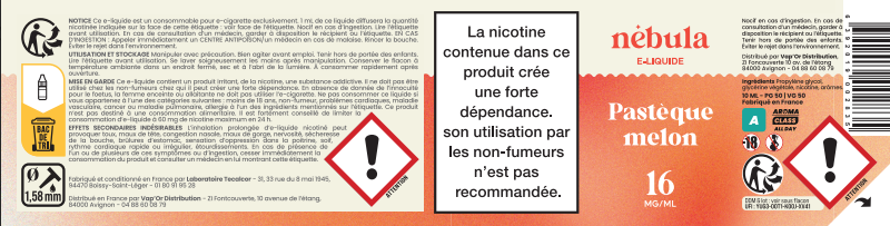 Les e-liquides Nébula sont fabriqués en France par le laboratoire Tecalcor. Avec une composition qui n'a rien à cacher, ils ne contiennent ni métaux lourds, ni plastiques, ni aldéhydes, ni d'alcool ajouté. Ils sont garantis sans diacétyle - sans colorants - sans extraits de tabac.