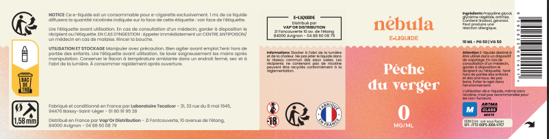 Les e-liquides Nébula sont fabriqués en France par le laboratoire Tecalcor. Avec une composition qui n'a rien à cacher, ils ne contiennent ni métaux lourds, ni plastiques, ni aldéhydes, ni d'alcool ajouté. Ils sont garantis sans diacétyle - sans colorants - sans extraits de tabac.
