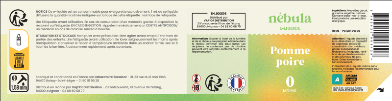 Le E liquide Pomme Poire par Nébula, un grand classique ....