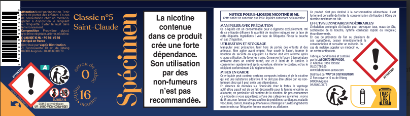 Les e-liquides SPECIMEN sont fabriqués en France par le laboratoire SENSE . Avec une composition qui n'a rien à cacher, ils ne contiennent ni métaux lourds, ni plastiques, ni aldéhydes, ni d'alcool ajouté. Ils sont garantis sans diacétyle - sans colorants - sans extraits de tabac.