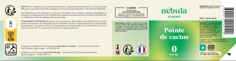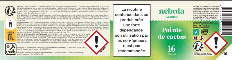 Les e-liquides Nébula sont fabriqués en France par le laboratoire Tecalcor. Avec une composition qui n'a rien à cacher, ils ne contiennent ni métaux lourds, ni plastiques, ni aldéhydes, ni d'alcool ajouté. Ils sont garantis sans diacétyle - sans colorants - sans extraits de tabac.