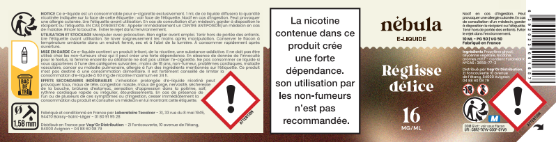 Les e-liquides Nébula sont fabriqués en France par le laboratoire Tecalcor. Avec une composition qui n'a rien à cacher, ils ne contiennent ni métaux lourds, ni plastiques, ni aldéhydes, ni d'alcool ajouté. Ils sont garantis sans diacétyle - sans colorants - sans extraits de tabac.