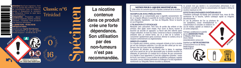 Les e-liquides SPECIMEN sont fabriqués en France par le laboratoire SENSE. Avec une composition qui n'a rien à cacher, ils ne contiennent ni métaux lourds, ni plastiques, ni aldéhydes, ni d'alcool ajouté. Ils sont garantis sans diacétyle - sans colorants - sans extraits de tabac.